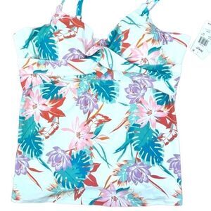 Raisins Curve twist-front tankini top elevates your swimwear wardrobe.