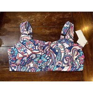 Size 20W | Hit all the right style marks in this plus size bikini top from Raisins Curve, designed with a swirly paisley print and underwire for added support.