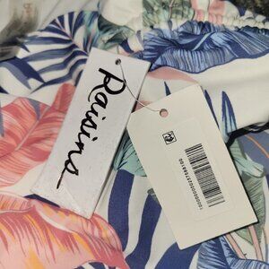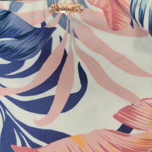 Raisins Women's Blue Palm Print Stretch Drawstring Ruched Lined Bikini. Medium..