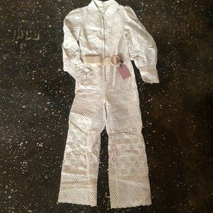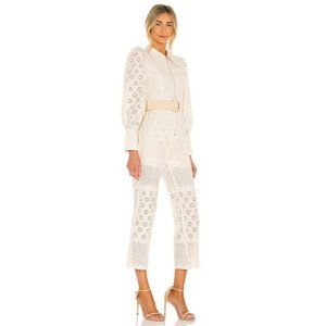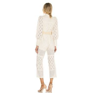 RAISSA Belted Jumpsuit Butter Beige Eyelet Belted Boho Revolve Zipper S NWT $473