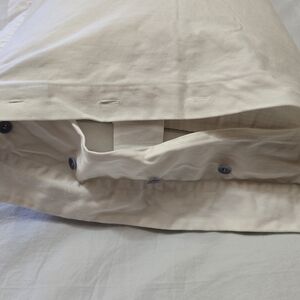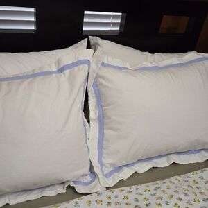 Condition pre-owned. There is a blue mark/line on front of one of the shams. (color transfer- blue thread?) No other obvious stains seen but these are white pillow covers. See photos