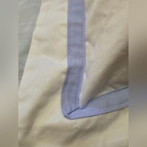 White 100% cotton with cornflower blue grosgrain ribbon border