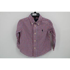 RALPH LAUREN 18M BOYS BUTTON DOWN SHIRT RED WHITE BLUE GINGHAM PLAID