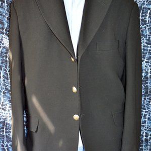 RALPH LAUREN 52R BLACK HEAVY WEIGHT GABARDINE 3 BUTTONS SILVER TONE