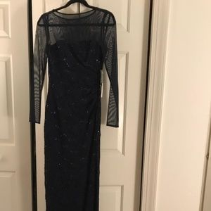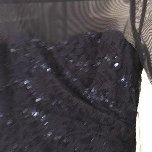 Color navy - Illusion Yoke Sequin Lace Gown has side zipper and side slit as shown in photo