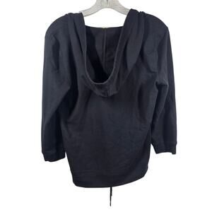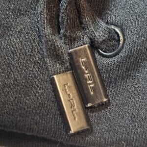 This is a Lauren Active Ralph Lauren Black Hoodie Pullover with Faux Wrap Front in Women's Size M; in EXCELLENT PRE-OWNED CONDITION! It has a French terry feel on the inside and is SO comfortable. It has a faux wrap front and a LRL crest on the left chest. The bottom hem has a drawstring to create a cinched look. The ends of the drawstring feature gold metal "LRL" pulls. The hoodie is versatile and can be worn alone or over a tank top or other shirt. It can be worn with leggings, exercise shorts, jeans, or even with a skirt.