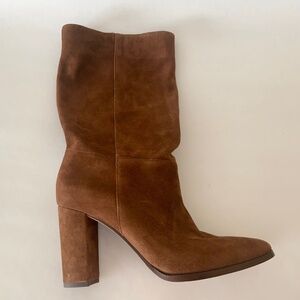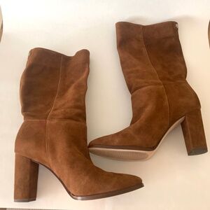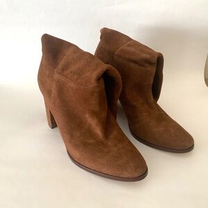 RALPH LAUREN ARTIZAN II BROWN SUEDE BOOTS Almond Toe Pull On Heeled Booties 9.5