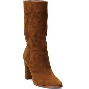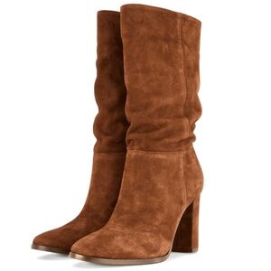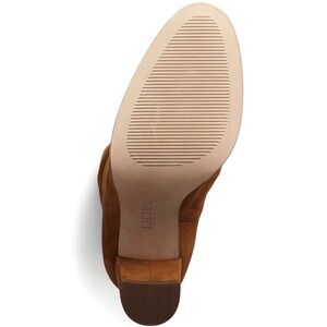 The soft hand of suede brings a luxurious sensibility to the slouchy Artizan II, while a chunky heel creates a leg-lengthening effect.