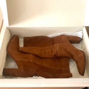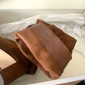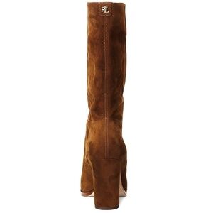 LAUREN RALPH LAUREN ARTIZAN II SUEDE HEELED BOOTS BROWN Almond Toe Pull On Mid Booties