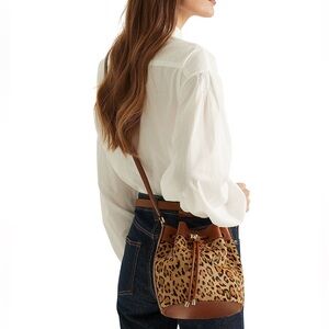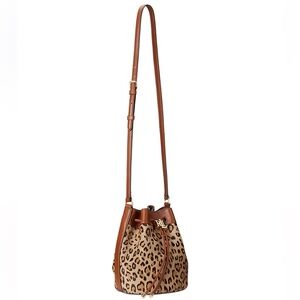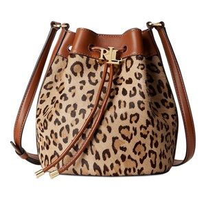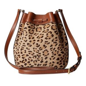 RALPH LAUREN Andie Drawstring Crossbody Bucket Bag Leopard Calf Hair NWT $325