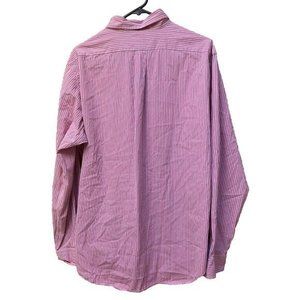 This shirt's easy care and machine washable garment care make it suitable for all seasons. Its red color and striped pattern make a statement, while its size of 16/L and chest size of 24" pit to pit provide a comfortable fit for men. Ideal for travel, casual, or business occasions, this shirt with button accents and logo can be paired with jeans or dress pants.