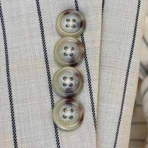 Retail $345 color is tan black pinstripe style belted. Wool blend.
