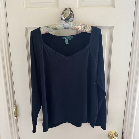 RALPH LAUREN BLACK V-NECK/JEWEL NECKLINE TOP-1X/EUC