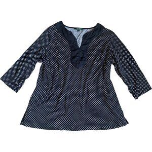 Ralph Lauren Sz 3X Women’s Polka Dot Blouse Stretch Lightweight Casual Formal 3/4 sleeves. 100% cotton. In good preowned condition. No visible flaws.
