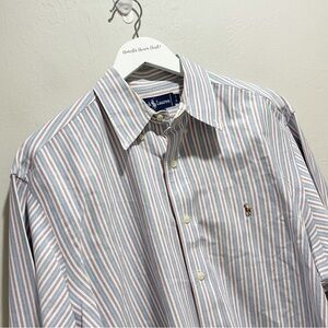 RALPH LAUREN BLUE LABEL Men’s Multi Stripe Oxford Dress Shirt Full Color Pony 16. Good pre-owned condition. Gentle signs of wear. No stains or holes. All measurements are approximate.