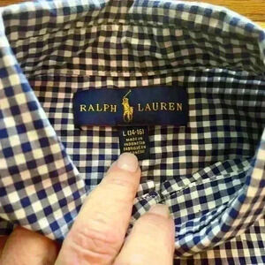 RALPH LAUREN - BOYS BUTTON DOWN. LARGE/14-16. Navy and White Plaid