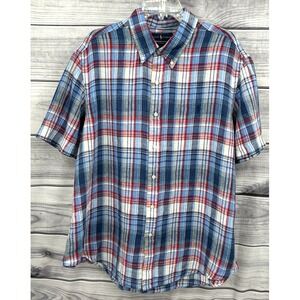 RALPH LAUREN BUTTON FRONT SHORT SLEEVE LINEN SHIRT Men's Size XXL RED/BLUE PLAID
