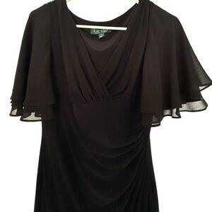 RALPH LAUREN Black Cocktail Dress Flutter Sleeves Women 4P 4 Petite