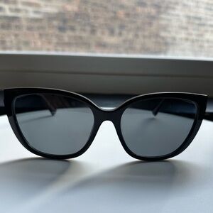 Beautiful Cutting edge butterfly frame sunglasses with black frames and grey lens