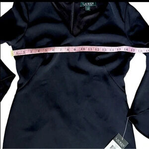 RALPH LAUREN Black Knee Length Sheath Dress Bell Sleeve V-neck Lace Hem Formal 4