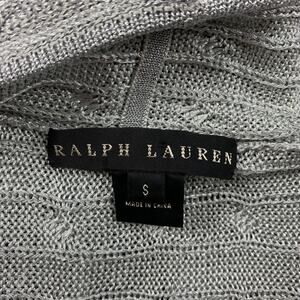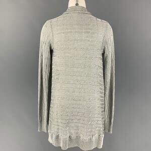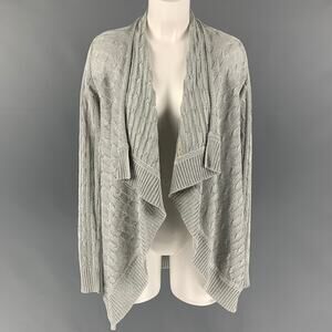 RALPH LAUREN Black Label S Silver Cotton Blend Cable Knit Open Front Cardigan