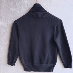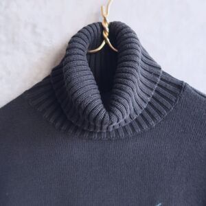 RALPH LAUREN Black Ribbed Turtleneck Sweater Size S 3/4 Sleeve Logo Cotton