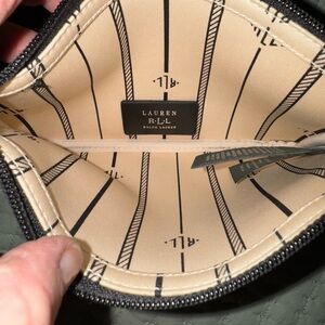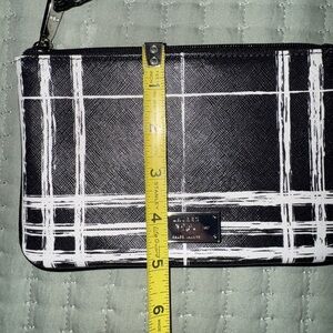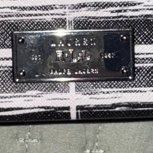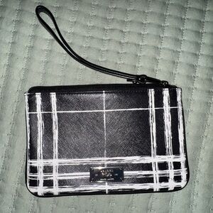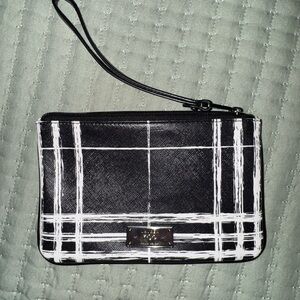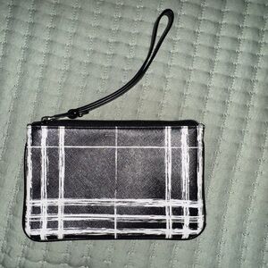 RALPH LAUREN Black & White Plaid SWANFIELD Leather Strap Med Wristlet