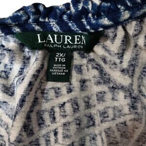 RALPH LAUREN Blouse Top Shirt Linen Blend Size 2X Blue Short Sleeves Tie Front