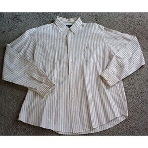 RALPH LAUREN Button Down Mens XXL White Stripe Classic Preppy Pony VTG