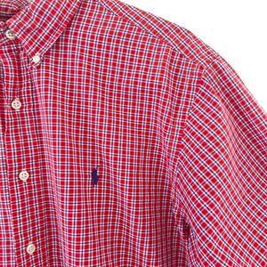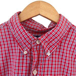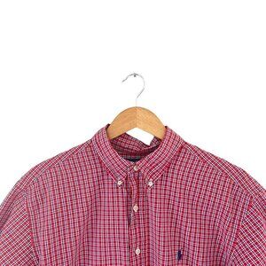 RALPH LAUREN Button Up Shirt Mens Classic XL Burgundy Red White Check Short Slv