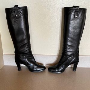 RALPH LAUREN Black Heeled Leather Boots with buckle