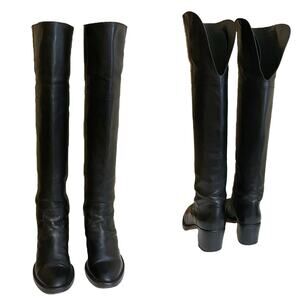 RALPH LAUREN COLLECTION Purple Label Black Leather Over the Knee Boots 6.5 Italy