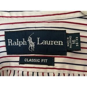RALPH LAUREN Classic Fit Button Down Shirt Men's Size 16 32/33 Red Blue Stripe
