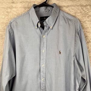 RALPH LAUREN Classic Fit Oxford Button Up Shirt Tri-color Pony Light Blue