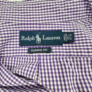 RALPH LAUREN Classic Fit Purple Gingham Plaid Button Down Shirt Sz 34/35 15.5”