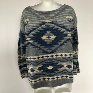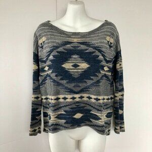 RALPH LAUREN Cotton Southwest Tribal Print Pullover Sweater blues greys cream M