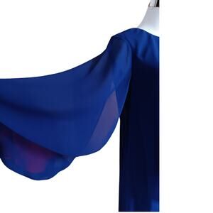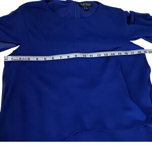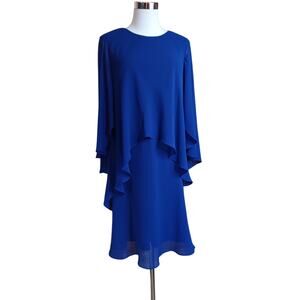 Step out in style with this elegant Lauren Ralph Lauren crepe cape dress! The royal blue color is stunning and perfect for any special occasion. The flowy design adds a touch of femininity, making you feel confident and beautiful. Approximately above knee length depending on your height, so review measurements before buying.