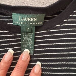 RALPH LAUREN FINE STRIPED T SHIRT NAVY RED LOGO SIZE S