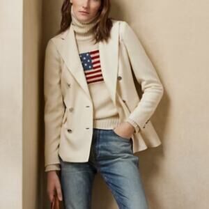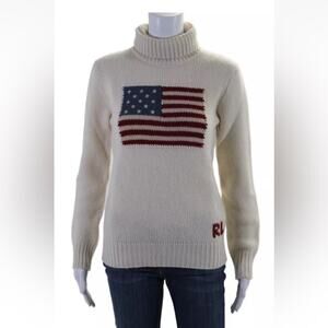 RALPH LAUREN Flag Cashmere Turtleneck Sweater - Cream S Small Purple Label