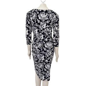 RALPH LAUREN Floral Print Faux Wrap Sheath Dress in Black & White SZ 8