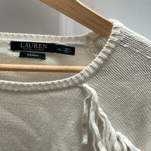 RALPH LAUREN Fringe Cream Crewneck Sweater Size Women’s xLarge