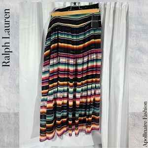 RALPH LAUREN GEORGETTE CRINKLE CUT STRIPPED MAXI SKIRT NWT SIZE 10