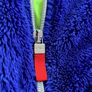 Blue fleece and green trim