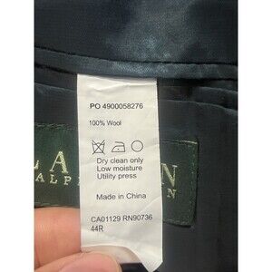 The Lauren Ralph Lauren Gray Windowpane Wool Blazer is a classic and sophisticated men's blazer perfect for a business occasion. Made from high-quality wool with faux suede elbow patches, this blazer features a double-breasted design with four-button sleeve button style and a two-button front closure. The notched lapel adds a touch of elegance to this blazer, which is designed for a regular fit and size 44 chest. This blazer is a timeless piece that will elevate any professional or formal outfit with its stylish windowpane pattern and satin lining.