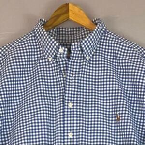 RALPH LAUREN Big Tall Blue White Gingham Check Button Down Shirt. 100% cotton, button down collar, flesh pony embroidered on chest. Size 2XB measures 29” pit to pit and 31” long. Very pale spot near button (final photo) otherwise in Excellent condition, clean and damage free! Inventory #94 Preppy, business casual, Spring, Easter, gingham, picnic, Oxford, officecore