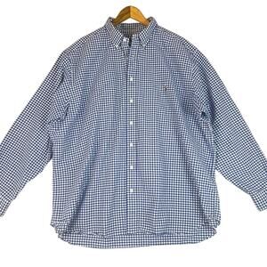 RALPH LAUREN Gingham Check Oxford Shirt Mens 2XB Blue White Preppy Button Down