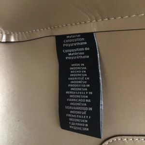 9" drop silver chain shoulder strap, top magnetic snap closure, protective metal feet, one inside slide pocket, lined in shiny gold.