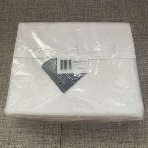 New with tags in packaging duvet cover. There are no signs of stains or flaws. These are not studio white but more of a slight off white in my opinion.
