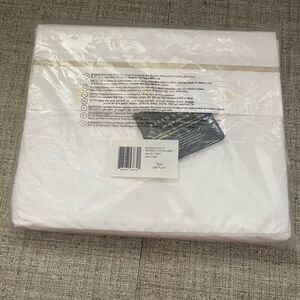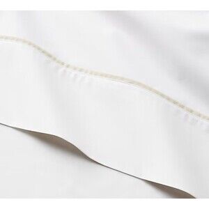 New in package. Organic cotton flat sheet. Sand dune (tan) color stripe on white sheets.