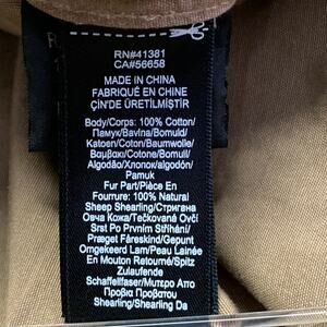 RRL by RALPH LAUREN limited edition "Garment Experimental" jumpsuit in a khaki cotton woven fabric featuring a dyed lamb shearling collar, multiple utilitarian buttoned pockets, and hidden zip up closure.